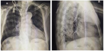 诊治经过:入院后患者家属放弃上肢AVF和移植物动静脉内瘘(arteriovenous graft,AVG),要求置入TCC作为长期透析血管通路。患者有反复右颈内静脉置管史,彩超探查右颈内静脉已闭塞,且患者有临时导管拔除史,故于2021年3月20日在B超引导下行右颈外静脉TCC置管术:B超引导下探寻右颈外静脉,置入导丝,用扩张器扩张皮下组织,切开皮肤2 cm,分离周围组织,暴露右颈外静脉,定位隧道出口于第三胸椎右侧距脊柱5 cm处,切开皮肤1 cm,分离皮下组织,置入带涤纶套套管(14.5 F, 50 cm, Palindrome; Medtronic, Minneapolis, MN),沿导丝置入撕脱鞘,后沿撕脱鞘置入导管于右颈外静脉,回抽导管动静脉端回血顺利,遂用肝素生理盐水封管,缝合切口,固定导管,无菌辅料包扎固定,患者无不适(图1)。血液透析流量达200~250 ml/min,X片显示导管位置见图2,观察2 d后出院至当地医院顺利透析。