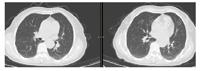综上,一家四口人,三人发热,两人确诊鹦鹉热,一人临床疑诊鹦鹉热。确诊二人出院1个月后门诊随诊,复查CT肺部实变完全吸收(图3、图4)。