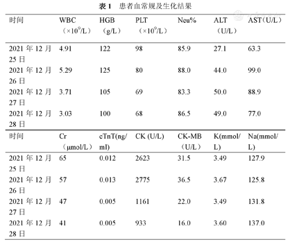 | 时间 | Cr(μmol/L) | cTnT(ng/ml) | CK (U/L) | CK-MB(U/L) | K(mmol/L) | Na(mmol/L) |