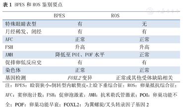 注:BPES:睑裂狭小-倒转型内眦赘皮-上睑下垂综合征;ROS:卵巢抵抗综合征;AFC:窦卵泡计数;FSH:促卵泡激素;AMH:抗米勒氏管激素;POI:卵巢功能不全;POF:卵巢功能早衰;FOXL2:为翼螺旋/叉头转录因子基因2