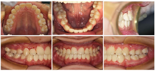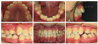 1.牙周正畸联合治疗:术前牙周基础治疗,维护牙周稳定。建议行PAOO(牙周辅助加速正畸成骨手术Peirodontally accelerated osteogenic orthodontics)手术,患者及家长考虑后表示拒绝。
