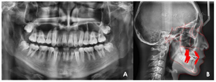 患者,男性,15岁。2+年前因嘴突、牙齿拥挤在当地矫牙,拔除4颗前磨牙后行正畸治疗,今间隙无法关闭,嘴突无明显改善,遂来本院寻求治疗。