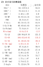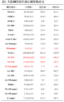头影测量治疗前后测量值对比