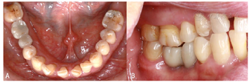 现病史:患者5年前右下后牙因残根拔除,未行修复治疗。现因牙齿缺失影响咀嚼功能,要求修复。平素体健,否认糖尿病、高血压等全身系统性疾病史,否认肝炎、结核等传染病史,否认药物过敏史,否认手术史。