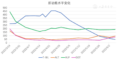患者于2022年6月10日好转出院,截至目前共随访2个月,患者未再服用中药,复查肝功能正常。