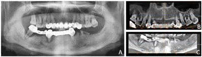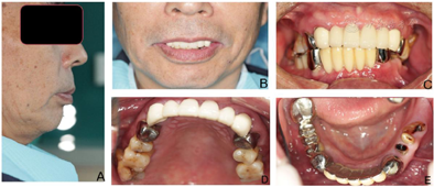 患者,男性,60岁,以"上下颌牙齿不适2年余"为主诉来诊要求治疗。患者多年前曾于外院行烤瓷固定桥修复,近2年来牙齿松动,咀嚼不适。患者身体健康状况良好,否认过敏史。