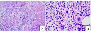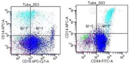 患者,女性,44岁,因"发热、胸闷4 d"于2020年1月入院。既往体健;无传染病史。体格检查:生命体征平稳,皮肤粘膜无黄染、无皮疹、无瘀点、瘀斑。扁桃体无肿大。胸骨无压痛。端坐呼吸,心界扩大,心音低顿,剑突下压痛阳性,脾肋约1 cm,肝无肿大,双肺听诊未闻及干湿啰音,双下肢无水肿。入院查血常规示WBC 21.17×109/L,MONO 12.29×109/L,RBC 3.87×109/L,HB 112 g/L,PLT 243×109/L,CRP:112.94 mg/L,PCT:0.250,心肌酶谱、凝血功能未见明显异常。超声示:大量心包积液。腹部CT:脾脏增厚,盆腔积液。为进一步治疗,收住我科。完善骨髓穿刺检查,骨髓细胞学:原始细胞约占有核细胞的8%,单核细胞比例增高,红系增生尚活跃,巨核细胞增生活跃。免疫分型:单核细胞约占有核细胞的16%,表型以成熟为主,主要表达CD14+CD16-的MO1型单核细胞,原始区域细胞约占有核细胞的1%,分布散在。粒细胞约占有核细胞的76%,比例增高,部分细胞考虑存在发育异常(图1)。骨髓病理:造血组织增生极度活跃,粒系比例增高,幼红细胞比例减低,巨核细胞明显增生,粒、巨两系可见少量病态细胞,单核细胞比例增高(图2)。染色体:正常女性核型。JAK2V617F、W515L、CALR突变均为阴性,43种AML融合基因均为阴性;胸部CT示两上肺多发感染,心包积液。按照2008年CMML WHO诊断标准[4]诊断:1.慢性粒单核细胞白血病CMML-2(G-MDPS:中危-2,CPSS评分:中危-1);2.肺部感染;3.心包积液。2020年1月21日复查心脏彩超示心包积液,量大,请心脏外科会诊后于2月6日行超声引导下心包穿刺置管引流术,2月7日抽出心包积液200 ml血性液体,2月8日抽出心包积液300 ml血性液体,心包积液涂片镜下发现大量单核细胞,考虑单核细胞浸润可能。患者于2020年2月13日行阿扎胞苷100 mg qd d1~7治疗,并联合抗感染等支持治疗,化疗后复查彩超心包积液明显减少,复查血常规示:WBC10.28×109/L,MONO 1.23×109/L,RBC 2.31×1012/L,HGB 62.0 g/L,PLT 381×109/L,患者好转出院。