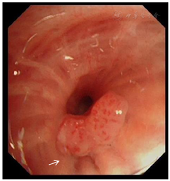 病理免疫组化结果:左肺下叶背段支气管黏膜活检:P40(+),CK5/6(+),TTF-1,NapsinA(-),Ki-67(增生活跃区域约50%),结合免疫组化,符合非角化型鳞状细胞癌。
