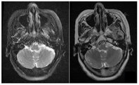 本病常见于中年女性,起病隐匿,早期可无症状。临床表现与肿瘤所在部位、肿瘤大小及侵犯范围有关。进行性面瘫是本病的主要症状,个别可突然发生或反复发作,面瘫前可出现面肌痉挛。当肿瘤侵犯中耳时,耳聋可为传导性,侵犯内耳道时则为神经性,常伴耳鸣、眩晕、平衡失调。当面部、耳部疼痛,或肿瘤位于鼓室段、乳突段并侵及中耳、乳突且合并感染时,耳内出现流脓。岩浅大神经被侵犯时可出现溢泪异常,蹬骨肌支受累时可出现听觉过敏,鼓索神经受侵犯时,还可能出现一侧舌部味觉异常。而腮腺内面神经瘤可仅表现为耳下肿块和面瘫[4]。虽然常见的症状包括不对称性听力损失和面部无力,但当肿瘤位于桥小脑角区时,患者也经常出现面肌痉挛、头痛、占位效应、脑积水或非特异性症状[5]。