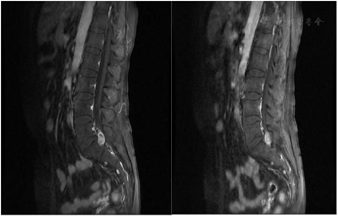 例1于1年前无明显诱因下出现右侧腰腿右小腿麻木疼痛不适,行走活动后明显加重,平卧休息时症状能缓解,不适感夜间明显,白天减轻。例2患者2年前无明显诱因下出现左侧腰疼,行走活动后明显加重,平卧休息时症状能缓解,半月前患者疼痛症状加重,夜间明显,白天减轻。