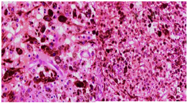 结合临床病史、影像学检查,综合病理学检查结果,两例均诊断为恶性黑色素性神经鞘膜肿瘤。