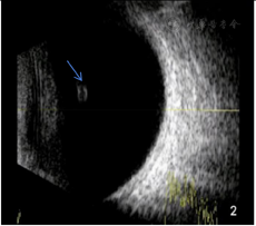 诊断依据:患者,女性,25岁,因反复发热、四肢多关节疼痛伴皮疹40 d,患者自觉右眼眼前有明显的漂浮物,眼科检查:视力右:1.0,左:0.8,眼压右:15 mmHg,左:14 mmHg,晶状体周边可见散在白色小片状混浊,右眼下方玻璃体腔内可观察到一半透明圆形悬浮物,表面上可见少量色素附着,且囊壁光滑,并随眼球运动,眼部B超示:右眼可见一环形中高回声。超声活体显微镜(UBM)示:双眼睫状体6点位各见一囊肿,囊肿呈圆形,囊内为无回声区,外周回声与睫状体回声强度基本相同的回声。眼前节照相示:右眼玻璃体腔内有半透明圆团状囊样悬浮物,其表面有棕黄色色素沉着,结合患者眼部B超、超声活体显微镜、眼前节照相表现可诊断为玻璃体囊肿及睫状体囊肿。