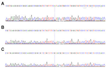 患者幼年起病,周期性低热、乏力、口腔溃疡,伴有中性粒细胞波动性减少,无严重感染病史,症状可自行恢复,呈良性疾病过程,与周期性中性粒细胞减少临床特征相符。因此我们为患者送检了核心家系外显子测序,结果提示患者存在基因突变ELANE c. 597+1G>A(图2),而其双亲该基因位点均为野生型GG,因此考虑患者存在新生基因突变。结合既往报道,该基因位点突变可影响ELANE基因转录后剪切。至此,该患者可确诊周期性中性粒细胞减少症。