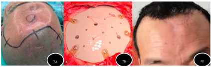 2022年4月11日,患者头颅CT提示脑积水较前较少(图6),患者GCS评分15分,MMSE评分21分,认知功能改善至轻度认知功能障碍。2022年5月17日,行"颅骨修补术"(图7)。术后1个月,患者GCS评分15分,MMSE评分27分,认知功能改善至正常。