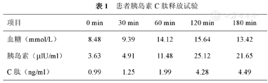| C肽(ng/ml) | 0.99 | 1.25 | 1.99 | 4.28 | 4.49 |