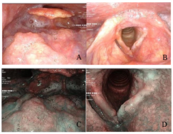 2021年10月18日行NBI喉镜检查示:白光所见如图1A、B,NBI下所见如图1C、D。