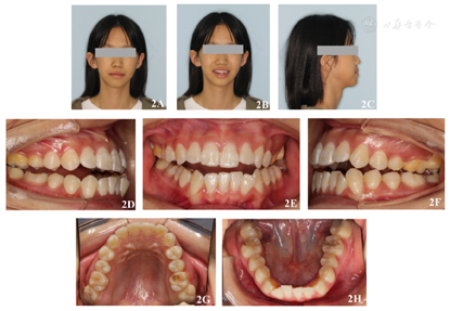 患者,女性,16岁,主诉前牙不能咬合1+月,要求正畸矫治。患者自述1+个月前因右侧关节弹响不适就诊于我院颞下颌关节外科,行X线检查和SPECT检查后诊断为"活跃型左侧CH(垂直型)",住院行"左侧CH高位切除术+阻生牙拔除术",术后前牙不能咬合。现关节无明显不适,遂至正畸科就诊,要求矫治前牙开合。