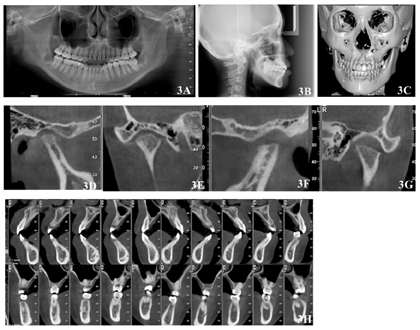 (2)正畸术前颞下颌关节临床检查:患者开口度为4.0 mm,开口右偏,张闭口耳前区无弹响、疼痛;左侧髁突动度较右侧为大;双侧咀嚼肌收缩协调。