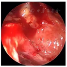 出院后继续给予鼻腔冲洗及外用糠酸莫米松等鼻喷药物治疗,清除术后结痂,减轻局部黏膜水肿对症处理。术后2个月复诊见鼻底开窗处黏膜上皮已形成(图10),继续随访中。