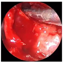 术后继续抗炎治疗,48 h抽出鼻腔膨胀海绵,检查见鼻底开窗口开放良好,边缘较整齐,腔内黏膜水肿,给予鼻腔冲洗及鼻喷激素对症处理,术后2个月复诊,鼻内镜见开窗口边缘上皮已形成,患者无不适。