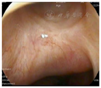 近年来随着鼻内镜技术的飞速发展及普及,微创外科已越来越显示出优势。鼻内镜技术的扩展到一些口腔颌面外科的诸囊肿,只要累及鼻底、鼻腔外侧壁或上颌窦的囊肿,经鼻腔上颌窦开窗手术,可以取得良好的效果。主要的好处体现在患者术后经口腔进食不受任何影响,避免了下牙槽神经损伤出现的上唇及上列牙齿麻木不适等并发症[3,4,5,6],由于手术在鼻内镜可视下进行,视野好,病变组织清除更加彻底,且大大减少了复发率。为防止开窗口闭锁或部分闭锁,我们设计了蒂留于前部的矩形黏膜瓣,翻转缝合于前壁,固定于上唇龈沟处,效果很好。也设计过蒂瓣留于后壁及侧壁的手术方式,术后均取得了良好的效果。