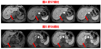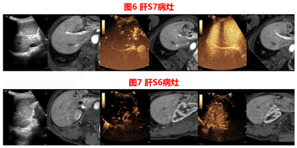 胆囊切除术前CT检查发现肝内病灶,胆囊切除术中病理结果证实S4段病灶为神经内分泌瘤,胆囊切除术后MRI确定剩余病灶,US-MRI容积导航影像融合联合超声造影进行病灶定位、引导、术后评估。