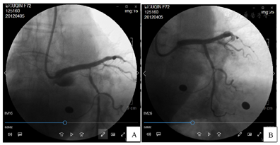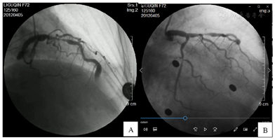 本例患者冠脉介入治疗术中突发自左主干近段至回旋支开口处血管夹层形成,考虑可能原因如下:(1)患者的自身因素。有文献报告动脉瘤分为先天性和后天性两类[1,2]。其中冠状动脉粥样硬化是导致冠状动脉瘤形成的最常见原因,约占52%,多发生在50岁以上的患者。冠状动脉瘤的发生率为0.3%~1.9%[3,4]。主要发生机制是由于脂质代谢紊乱(高脂血症)特别是低密度脂蛋白胆固醇异常增高,过高的低密度脂蛋白胆固醇首先沉积于血管壁的内皮层,引起内皮细胞破坏及纤维化,进而累及中层弹力纤维以及血管壁全层,导致血管营养障碍,结果造成管壁内膜撕裂,管壁变性,局部萎缩、脆弱而形成动脉瘤[5]。我们认为本例患者冠状动脉瘤形成的主要原因可能是高脂血症导致的冠状动脉粥样硬化,而患者冠状动脉的非动脉瘤部位如左主干血管也可能存在不同程度的动脉粥样硬化和类似的病理改变,导致血管壁结构异常而易于发生血管夹层。(2)术者的操作因素。首先考虑可能与前降支近段狭窄处进行球囊扩张有关。因左主干存在散在斑块,当球囊扩张前降支近段狭窄时发生"跷跷板"样效应,从而引起左主干血管夹层形成。其次,指引导管对左主干血管壁抵压过紧,未能与左主干应保持良好的同轴性。再次,推注造影剂力量过大。这些因素可能都是此患者血管夹层形成的主要原因。综上所述,我们认为对于冠状动脉狭窄合并动脉瘤形成的患者,可首先推荐患者进行冠状动脉旁路移植术。若进行介入治疗,必须谨慎小心,避免暴力操作。介入手术过程中应注意以下几点:(1)选择预扩张球囊的直径不宜过大。(2)选择指引导管的型号不宜过大。应根据主动脉根部内径、冠脉的直径和操作的需要选择合适的指引导管型号。合适的指引导管应能提供良好同轴性,不会导致嵌顿。避免指引导管深插造成血管内膜损伤、撕裂。(3)推注造影剂应逐渐加压。避免用力过大冲击远端血管亦会导致内膜撕裂形成夹层。(4)出现血管急性夹层后要尽快开通闭塞血管,减少心肌缺血时间。首先,最重要的是保证导引导丝始终在真腔内。其次,血管夹层形成后避免反复扩张及反复造影,防止夹层扩展。再次,尽快植入支架以封闭血管夹层,且夹层远端支架选择不应保守,此支架远端落脚点要超过夹层远端5 mm,保证支架能完全覆盖夹层,以免因支架植入导致血管远端(支架以远)继发血肿形成[6]。有文献报告冠脉介入治疗导致血管急性夹层形成,首选治疗方法为支架植入术[7,8]。其成功率超过80%,病死率小于10%。如果不成功,则需行冠脉旁路移植术。其病死率上升至50%。