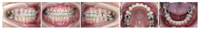 上颌减数14、24后直丝弓滑动法内收前牙改善突度,36、46牙周骨增量手术后前移直立两侧后牙关闭缺牙间隙。