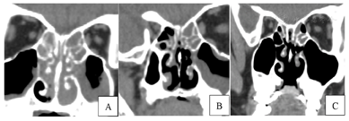 患儿于2022年1月3日及2022年12月22日复查鼻窦CT(图1B、C):预后良好,未见复发情况。