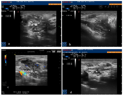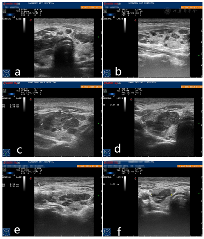 浅表超声提示甲状腺多发低回声结节及颈部软组织肿块,在超声引导下行粗针穿刺活检,病理诊断为LCH。入院后完善相关检查,确诊其为多系统LCH,累及脑垂体、甲状腺、颈部软组织、淋巴结、脾脏。