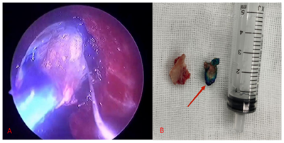 慢性泪囊炎是眼科临床常见的泪道疾病,通常由于鼻泪管狭窄或阻塞引起,泪囊内分泌物淤积导致患者眼部溢泪、黏液性分泌物,继发感染后则出现大量脓性分泌物。患者多有沙眼、慢性结膜炎、泪道损伤、泪道结石、泪道肿瘤、鼻息肉、慢性鼻炎等病史,好发于中老年女性。患者常因溢泪、脓性分泌物等症状而影响生活质量,药物治疗无效或只能暂时减轻感染症状。本例为真菌感染引起的慢性泪囊炎合并泪囊结石在鼻内镜下取石,及鼻内镜下行鼻腔泪囊吻合手术,最终取得满意的治疗效果,旨在扩展该病罕见病因及体征的认识。