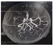 术前头颅MRA报告:1.右侧额颞顶岛叶、右侧基底节区片状异常信号,考虑缺血梗死灶;2.右侧大脑中动脉纤细,分支减少,SWI右侧大脑中动脉M1段呈条状低信号,考虑右侧大。脑中脉栓塞?见图2。
