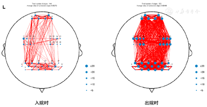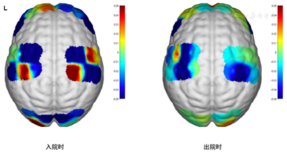 2.近红外静息态脑功能检查提示全脑氧合血红蛋白含量低,全脑功能连接下降,左侧前额叶功能连接显著下降,见图1,图2,图3。