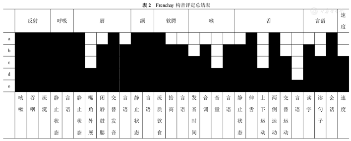 Frenchay构音评定量表:12a/28a,构音障碍类型为功能性构音障碍,严重度为重度障碍。