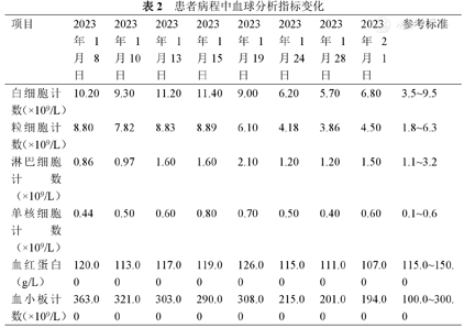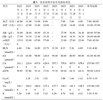 经过治疗,患者发热、胸闷、气憋症状消失,咳嗽减轻,呼吸衰竭得到纠正,新冠病毒被清除,同时食欲改善,进食恢复,血象、血凝及生化指标逐渐恢复至正常水平,各炎症标志物、N端钠尿肽基本降至正常水平,未继发真菌、细菌感染,继续观察1周,于2月3日病情好转出院。
