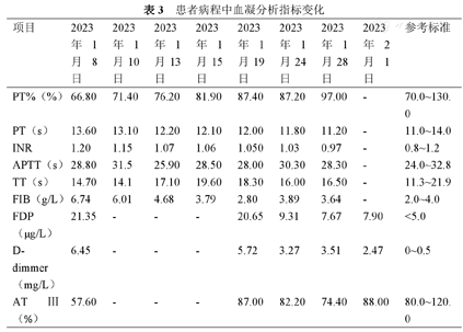 | FDP( μ g/L) | 21.35 | - | - | - | 20.65 | 9.31 | 7.67 | 7.90 | <5.0 |
