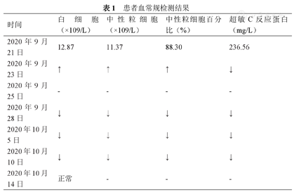 | 时间 | 白细胞(×109/L) | 中性粒细胞(×109/L) | 中性粒细胞百分比(%) | 超敏C反应蛋白(mg/L) |