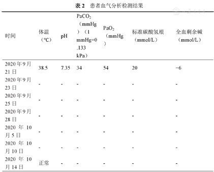 患者血气分析检测结果