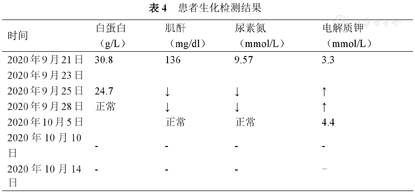 | 时间 | 白蛋白(g/L) | 肌酐(mg/dl) | 尿素氮(mmol/L) | 电解质钾(mmol/L) |