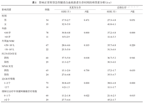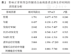 影响正常核型急性髓系白血病患者生存时间的单因素分析(