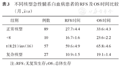 不同核型急性髓系白血病患者的RFS及OS时间比较(月,