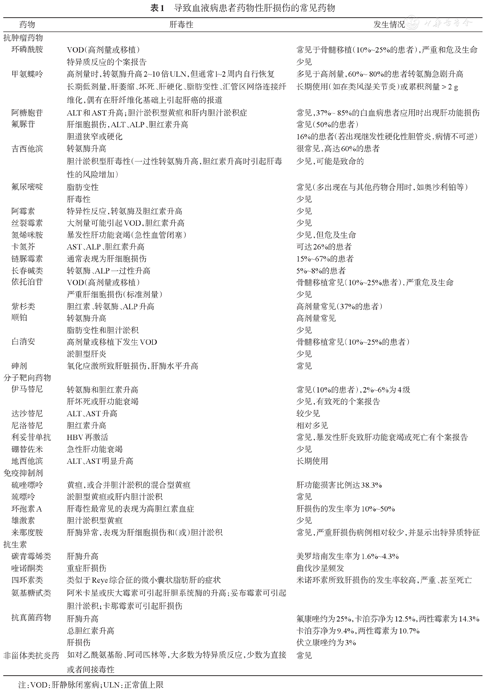导致血液病患者药物性肝损伤的常见药物