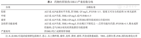 | 重度 | ALT或ALP升高,TBIL≥25 mg/L且因DILI需住院或延长住院时间 |