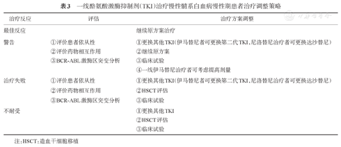 一线酪氨酸激酶抑制剂(TKI)治疗慢性髓系白血病慢性期患者治疗调整策略