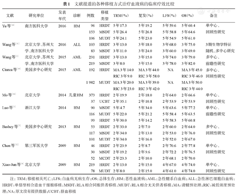 文献报道的各种移植方式治疗血液病的临床疗效比较