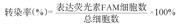 转染24 h后收集细胞,于荧光倒置显微镜下观察,计数荧光素FAM表达阳性细胞及视野内全部细胞数量,按以下公式计算转染率: