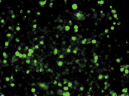 通过荧光倒置显微镜观察转染后细胞形态变化,转染后24 h的部分K562细胞发出绿色荧光信号,部分细胞膨胀,细胞壁有皱褶或破损,形态完整(图1)。转染率为(53.4±3.2)%。