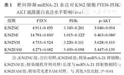 靶向抑制miRNA-21表达对K562细胞PTEN-PI3K/AKT通路蛋白表达水平影响(