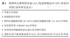 预测再生障碍性贫血(AA)免疫抑制治疗(IST)有效的因素(国外研究显示)