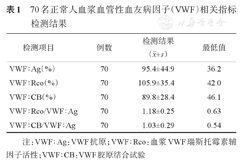 70名正常人血浆血管性血友病因子(VWF)相关指标检测结果